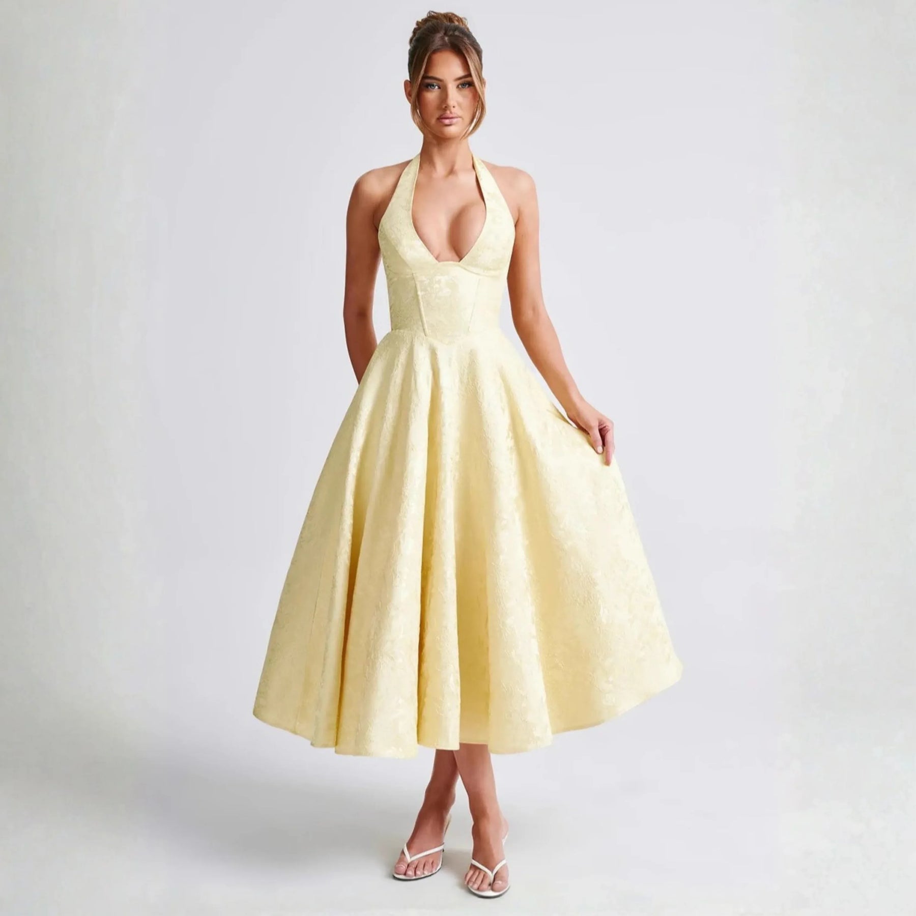 Why Choose ZIORA™ - Chic Low Cut Sleeveless Open Back A-Line Halter Maxi Dress?