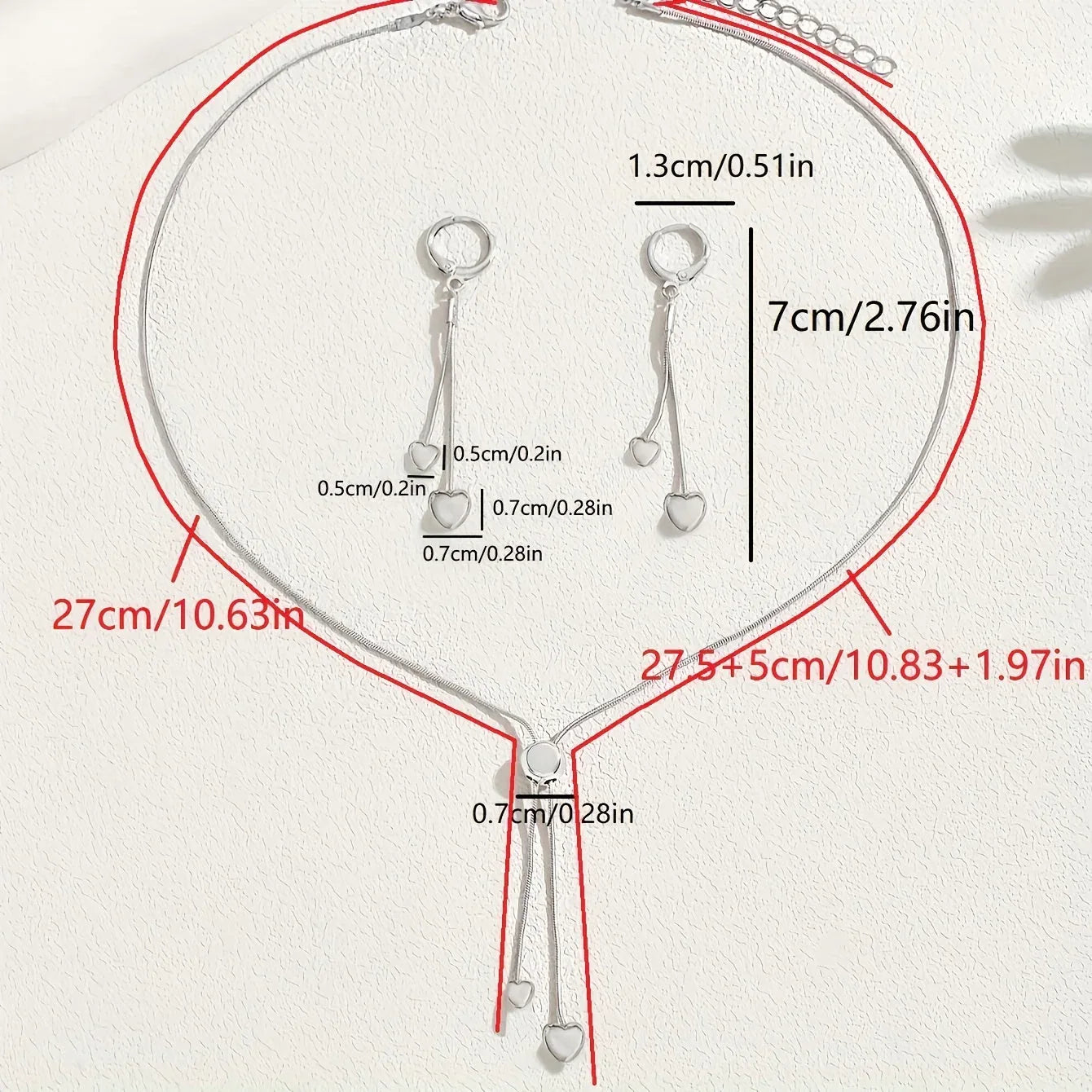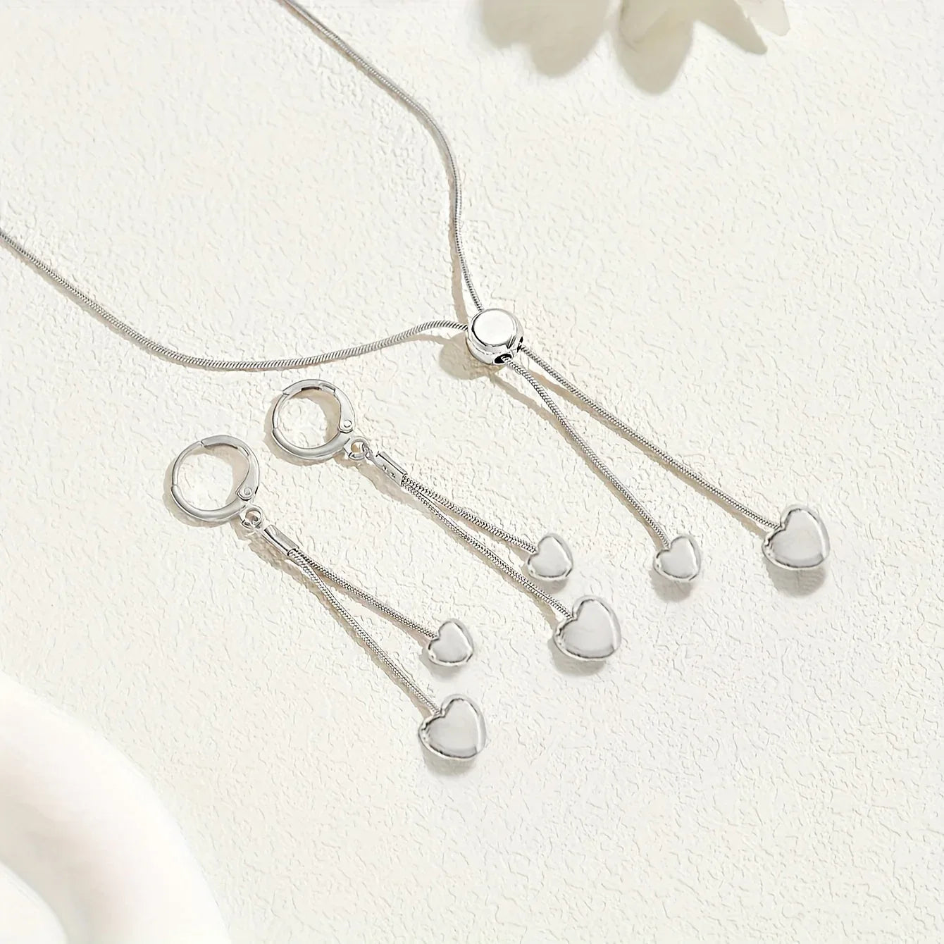 Adjustable Heart Pendant Necklace & Earrings Set