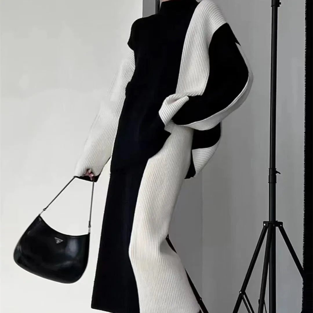PIYA™ - Elegant Turtle Neck Long Sleeve Top and Skirt Set