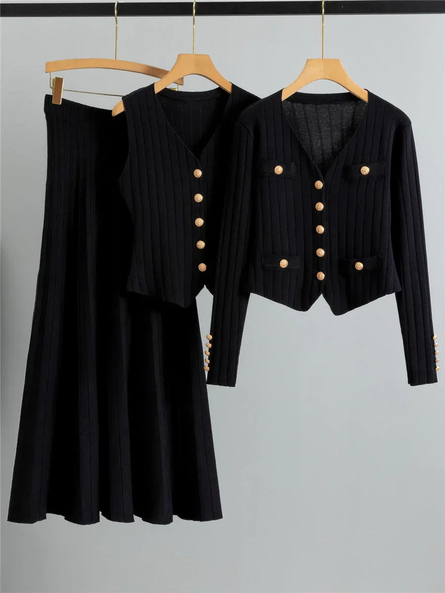 XANDY™ - Elegant V-Neck Buttoned Vest and High Waist Skirt